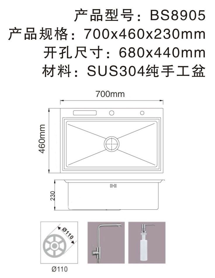 品麗(lì)格 不(bù)鏽鋼水(shuǐ)槽BS8905